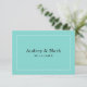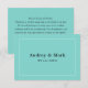 Inspirado pela tonalidade de azul mais icônica do design de luxo, este cartão de agradecimento flat chic apresenta um fundo azul de ovo de robin ousado com uma moldura de borda branca limpa e os nomes do casal exibidos em tipo serif elegante como o design de monograma central. A estética refinada e inspirada em joias faz uma declaração de cor sofisticada que combina perfeitamente com estilos de casamento clássicos e formais. O verso inclui uma mensagem personalizada de gratidão que pode ser personalizada.
