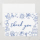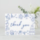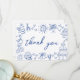 Cartão de Agradecimento de Casamento Azul e Branco Inspirado na Europa e Desenhado à Mão.
