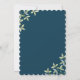 Este é um lindo padrão floral e de videira/folha combinado com um rico e luxuoso fundo azul e um pouco de elegância e sofisticação na fonte curva. Sinto que este convite cobre todos os aspectos. Você tem um lindo padrão floral/folha com uma fonte elegante, além de uma cor azul rica e ousada para trabalhar. O que mais uma garota pode querer? Posso imaginar essa linda cor azul com flores marfim e faixas na cintura fluindo pela parte de trás do vestido de cada acompanhante. Lindo! Imagine coroas de guirlanda de verde vivo com apenas um pouco de baby's breath (Suspiro) para as acompanhantes com uma combinação de fitas azuis e marfim fluindo para trás. A madrinha terá uma coroa de guirlanda de baby's breath e fitas marfim fluindo dela. Será o casamento do ano. Me envie um convite