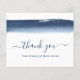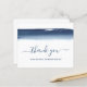 Cartão de agradecimento empresarial econômico criativo e único com um design simples com um pincel de aquarela azul marinho artístico na parte superior, juntamente com as palavras "obrigado" em uma escrita à mão com floreios sobre um fundo branco. A parte traseira tem sua mensagem pessoal. Este design moderno e profissional é ótimo para qualquer tipo de empresa.