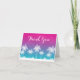 Um cartões de agradecimentos moderno tropical. Apresentando um legal design azul aqua e rosa-quente com palmeiras. Perfeito para um luau chamado Bat Mitzvah ou festa de praia Doce 16 anos.