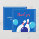 Cartão De Agradecimento Azul Vibrante e Vermelho de Boliche 6º Aniversário