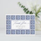 Leve seus convidados a um oásis mediterrâneo com nosso cartão de agradecimento para chá de noiva Blue Tile! Este cativante design apresenta intrincados azulejos azuis que lembram padrões italianos ou marroquinos, exalando um senso de elegância exótica.
