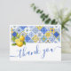 Personalize o seu belo cartão de agradecimento de Chuva de Noiva de Limão com Azulejos Azuis Italianos e torne-o único para o seu dia memorável!