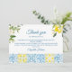 Cartão De Agradecimento Azulejos Azuis Mediterrâneos e Limões Chá de Noiva