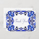 Cartão De Agradecimento Azulejos azuis mediterrâneos French Blue para chá