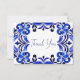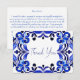 Cartão De Agradecimento Azulejos azul francês Mediterrâneo chá de lingerie