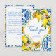 Cartão De Agradecimento Azulejos mediterrâneos de maiolica limões chá de p