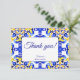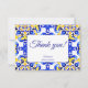 Cartão De Agradecimento Azulejos Talavera azuis festa de casamento mexican