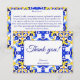 Azulejos Talavera azuis amarelos cartões de agradecimento de casamento festa de casamento mexicana, padrão de azulejo azul italiano Mediterrâneo azulejos Maiolica azuis padrão de azulejos gregos cartões de agradecimento de casamento