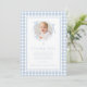 Cartão De Agradecimento Baby Blue Gingham Photo Boy Baptism