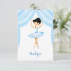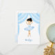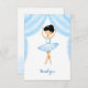 Cartão de agradecimento temático de ballet para a festa da sua menina. Ilustração de uma pequena bailarina morena com tutu azul em tons de azul claro.