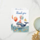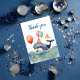 Adicione um pouco de gentileza à celebração de aniversário do seu amante do mar com as nossas cartas de obrigado de festa de aniversário de meninos submarinos. Ordene hoje por uma saquê doce e memorável! Uma adorável baleia bebê nadando no mar adornada com um chapéu de aniversário e balões. Há muito espaço para personalizar com o nome e a data especial do aniversariante! Misture e combine com nossos outros produtos de festa divertida da My Baby Boutique!