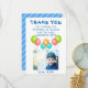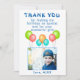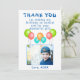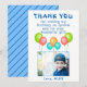 Baloes Aniversário Infantil Foto Cartão de agradecimento. Cartão de agradecimento de balão de aniversário para a festa de aniversário das crianças. Este design vem com balões nas cores vermelho, azul, rosa e verde. Personalize o cartão com o nome do seu filho, mensagem de agradecimento e foto.