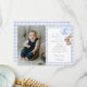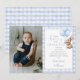 Este charmoso cartão de agradecimento de foto de primeiro aniversário apresenta um coelhinho fofo segurando balões e um fundo xadrez azul. Criado por Thisisnotme©