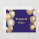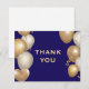 Cartão De Agradecimento Balões Confetes Azul Marinho e Dourado