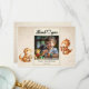 Balões de Urso de Pelúcia Fofos Aniversário Infantil Foto Obrigado Cartão Postal. Desenho fofo de um urso de pelúcia com balões coloridos e nuvens em fundo azul. Adicione sua foto, texto e nome.