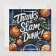 Celebre o seu casamento com um estilo esportivo com este cartão “Obrigado por um Slam Dunk” tema basquetebol! Perfeito para casais que amam basquetebol, apresenta um design de slam dunk com diversão e energia. Ideal para enviar agradecimentos aos convidados após o grande dia. Para quem: Convidados do casamento, amigos, familiares, fãs de basquetebol e casais que amam esportes.