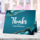 Certifique-se de que o seu Bat Mitzvah favorito mostre o seu apreço a todos os que apoiaram o seu evento principal! Envie este cartões de agradecimentos legal, único, moderno e personalizado. Script branco manuscrito e tipografia ousada sans serif sobrepõem um fundo azul-lacrimogêneo profundo com azul-turquesa acentuado com veias douradas falsas. Mais agato azul-turquesa e uma estrela dourada falsa de David, juntamente com sua nota personalizada, adornam o dentro. Personalize o texto personalizado com o nome e a mensagem personalizada do seu Bat Mitzvah. Garantido para adicionar um toque de classe à correspondência dela! Basta digitar seu nome na frente, adicionar sua mensagem personalizada no dentro, e você pode personalizar facilmente esse cartões de agradecimentos do Bat Mitzvah. Por favor, me mande mensagens com quaisquer perguntas ou solicitações.