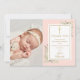Cartão de agradecimento de foto de batismo com assinatura dourada. Personalize com sua foto e mensagem especial de agradecimento de batismo em letras douradas elegantes neste design moderno com fundo rosa. Criado por Thisisnotme©