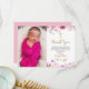 Apresentando sua própria foto especial de bebê, delicadas terras de rosas de aquarela sentam acima e abaixo de sua mensagem de batismo especial personalizada ou obrigado batizante. O fundo no verso pode ser alterado para sua cor favorita ou adicionar detalhes adicionais. Projetado por Thisnotme©