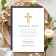 Cartões de agradecimentos de Batismo de Marinho Azul Cruzado Personalizado.