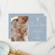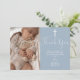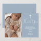 Este cartão de agradecimento de batismo com letra elegante azul empoeirado pode ser personalizado com sua foto especial e mensagem de agradecimento em letra chique. Criado por Thisisnotme©