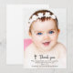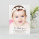 Um design simples e moderno de foto personalizada para agradecer a todos que compareceram ao batismo, batizado ou comunhão do seu filho. A mensagem de texto com tipografia é personalizável. Você pode alterar a fonte, cor e tamanho da fonte. Também pode mudar a cor da cruz e do gráfico de agradecimento e reposicionar o texto usando a Ferramenta de Design. O design de agradecimento especial para mostrar seu amor e gratidão é seu para personalizar e customizar como desejar. O design neutro em termos de gênero é adequado para menino ou menina. Substitua a imagem por uma foto vertical da criança.