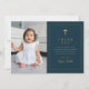 Um doce cartões de agradecimentos batismo com um belo quadro de brilho dourado e texto de batismo clássico editável com fotografia. Clique no botão editar para personalizar este design com seus detalhes e foto.