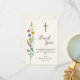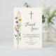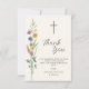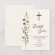 Este cartões de agradecimentos floral rústico do Batismo apresenta flores silvestres e uma cruz sobre fundo de creme mole. Facilmente personalizável. Original Watercolor © Michele Davies.