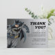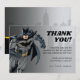 Agradeça a seus convidados em estilo super-herói com este cartão de agradecimento personalizável do Batman com tema de quadro-negro! Com o Batman em ação e texto em negrito inspirado em quadro-negro, este cartão pode ser personalizado para adicionar um toque único e memorável à sua celebração. Perfeito para qualquer evento temático do Batman.