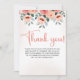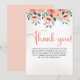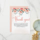 Linda tarjeta de agradecimiento a tus invitados para tu fiesta de Baby shower personalizable. Lindo diseño floral con un ramo floral en acuarela con tonos rosas y durazno. Esta invitación botánica a la ducha de bebé es perfecta para duchas de bebé Chicas y duchas de primavera.