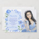 Cartão De Agradecimento Bebê Azul Borboletas Florais Foto Quinceañera