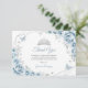 Azul bebê, prata e cartões de agradecimentos floral de Quinceanera. Recursos, fontes de script, borboletas prateadas, rosas de aquarela e tiara. Perfeito para uma elegante celebração de glam estilo princesa. Personalize com seus próprios detalhes.