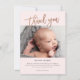Esta foto moderna de 2 agradecimentos apresenta rosa gold script obrigado, mensagem pessoal e foto na frente. O verso inclui uma segunda foto de bebê que é uma foto vertical de sangria de cheio. Clique no botão editar para personalizar este design com suas fotos e detalhes.