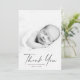 Cartões de agradecimentos de Bebê de Foto de Script Moderno. A parte traseira inclui um obrigado genérico que você pode personalizar ou remover se preferir escrever seu obrigado manualmente.