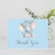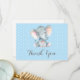 Cartão De Agradecimento Bebê Elefante Bonito Menino Azul e Cinza