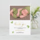 Agradeça aos seus convidados e mostre suas raízes irlandesas com este cartão de batismo com trevos verdes móveis em aquarela e uma foto do novo bebê. Envie sua própria imagem e coloque os trevos onde quiser. Por favor, note que a cor do script dourado falso vem da tinta e não é metálica ou com relevo.