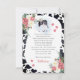 "Santa Vaca, É uma Rapariga!" holstein Chá de fraldas de bezerro preto e branco de vaca bebê ""Obrigado", com flores rosa e brancas e um fundo preto e branco de vaca. O bezerro doce está a fazer um buquê floral sobre a cabeça. Design composto por Designs Holiday Hearts.