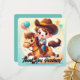 Um jovem vaqueiro anda de cavalo nesta divertida design ao estilo ocidental.