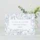 Este belo cartões de agradecimentos de casamento floral azul e branco inclui um adorável padrão botânico floral e foliar azul com tipografia clássica. A parte de trás é simples de branco para deixar espaço para um obrigado pessoal que você envia ou deixa vazio.