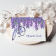 Crie vibrações especiais de felizes para sempre a partir do seu casamento de primavera com estas pétalas de videira de wisteria caindo da borda superior e bicicleta roxa à esquerda. Um texto especial de "Obrigado".
