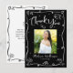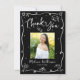 Make sure your favorite grad shows appreciation to all who supported their milestone event! Send out this quirky, playful, simple, modern, personalized photo thank you card. On the front, fun white handwritten script typography and hand drawn graduation icon sketch doodles, along with your custom photo, overlay a dramatic black background. Add the photo of your choice and personalize the custom text with your grad’s name, and class year. On the back, type in your custom message or delete the copy altogether so you can write your own handwritten note. Matching invites, address labels, banners, stickers, hand fans and other graduation goodies are also available in this trendy and stylish collection. Guaranteed to add a stylish touch to their correspondence!