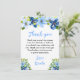 This beautiful and elegant birthday thank you card features watercolor baby blue and navy blue flowers with foliage. The text combines handwritten script and serif fonts for a stylish and modern look. This is perfect for a spring or summer rustic birthday.