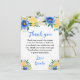 Cartão De Agradecimento Blue and Yellow Floral Birthday