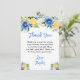 Cartão De Agradecimento Blue and Yellow Floral Birthday Party