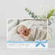 Cartão De Agradecimento Blue Bow Modern Minimalist Script Baby Photo Birth