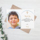Cartão De Agradecimento Blue florals, foto-boy gold cross First Communtion