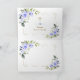 Elegant card design featuring watercolour delicate blue flowers and green leaves, a faux gold glitter frame, confetti, cross, floral divider, on white background. Use Personalise tool to add your info, change fonts, font's colours. For matching items, please, visit my New Baptism/Christening Celebration Collection.