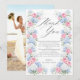 Celebrate your special day with the timeless elegance of this watercolor regency garden design. Featuring a lush border of soft pink roses, delicate blue and white hydrangea blooms, this design is perfect for a spring or summer garden wedding. The romantic botanical border frames your custom details in a clean, sophisticated layout, blending a classic serif font with elegant script accents.